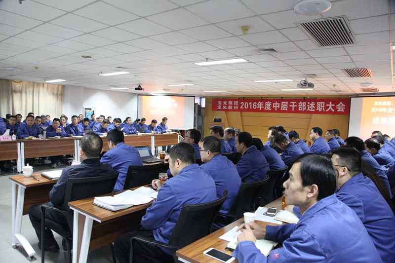 2017年1月25日,寶光集團、寶光股份2016年度中層干部述職大會在科技大樓二樓會議室進行。寶光集團班子成員李軍望、岳永學、李波、韓占青,寶光股份高管張軍、胡唯、袁軍為、王荃、黨向東及寶光集團、寶光股份80余名中層干部參加會議。述職報告會由董事長、總經理李軍望主持。